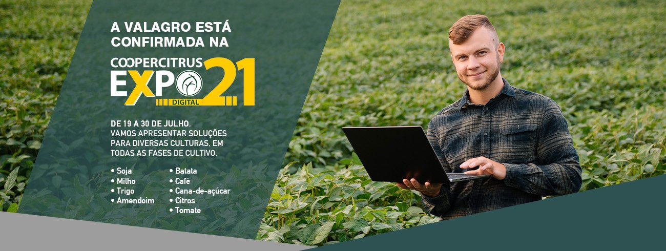 A Valagro, empresa líder em pesquisa, desenvolvimento e comercialização de bioestimulantes, participa da Coopercitrus Expo Digital, a ser realizada de 19 a 30 de julho de 2021. O evento, realizado pela Coopercitrus (Cooperativa de Produtores Rurais), tem como foco as novas tecnologias e soluções para aumentar a produtividade agrícola.